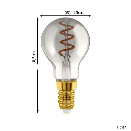 Die Eglo LED Kugel E14 Fadenlampe Smokey 4W 100lm - 820 Extra Warmweiß | Dimmbar - Ersatz Für 15W ist eine effiziente E14 LED-Lampe mit Retrodesign und der perfekte Ersatz für Ihre konventionellen 15W Lampen mit E14. Zudem strahlt sie Licht in der Farbtemperatur 2000K - Extra Warmweiß aus und punktet durch eine lange Lebensdauer.