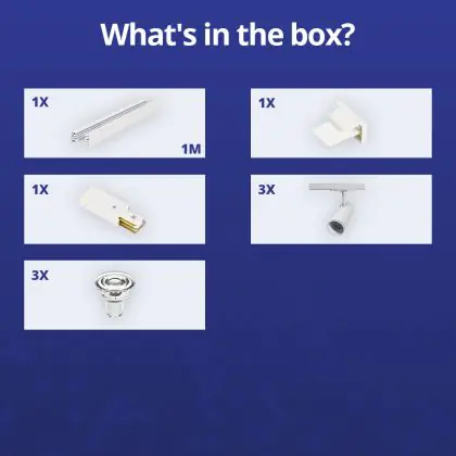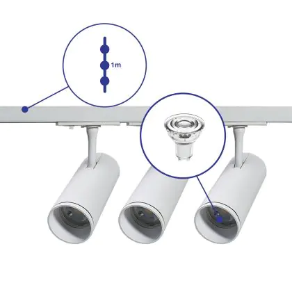 Beschreibung Komplettset 1-Phasen Rail 1 Meter Weiß | incl. 3x Spot + GU10 2700K 3W Dimmbar + Abschlusskappe, Stromanschluss