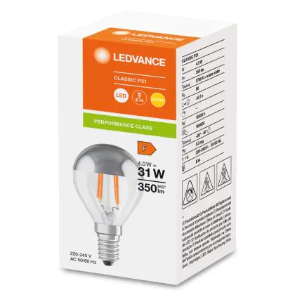 Die Ledvance Classic LED E14 Birne Fadenlampe Klar 4W 350lm - 827 Extra Warmweiß | Ersatz für 35W ist eine effiziente E14 LED-Lampe mit Retrodesign und der perfekte Ersatz für Ihre konventionellen 35W Lampen mit E14. Zudem strahlt sie Licht in der Farbtemperatur 2700K - Extra Warmweiß aus und punktet durch eine lange Lebensdauer.