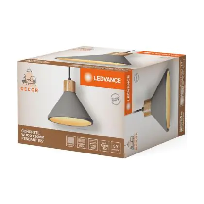 Die Ledvance Decor Beton/Stahl/Holz Pendelleuchte 220 Dunkel Grau | Geeignet für E27 sorgt für eine angenehme Ausleuchtung und punktet durch modernes Design. Diese Leuchte ist speziell zur Montage an der Decke vorgesehen.