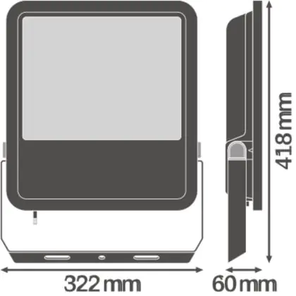 Der Ledvance LED-Scheinwerfer 165W 6500K 20000lm IP65 | Schwarz - Symmetrisch ist in stilvollem Schwarz gehalten. Dank der hohen Robustheit kann die Leuchte problemlos in Außenbereichen eingesetzt werden.