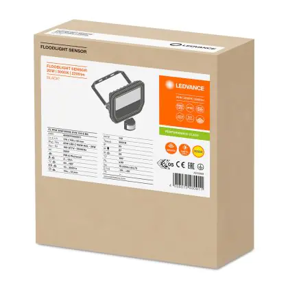 Beschreibung Ledvance LED-Scheinwerfer Sensor GEN 3 Schwarz 20W 2200lm 100D - 830 Warmweiß | IP65 - Bewegungs- und Lichtsensor - Symmetrisch - Ersatz für 50W