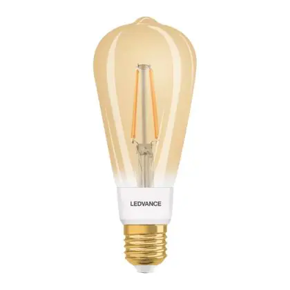 Die Ledvance Smart+ Zigbee E27 Edison Classic Fadenlampe Gold 6W 680lm - 825 Extra Warmweiß | Dimmbar - Ersatz für 50W ist eine effiziente E27 LED-Lampe mit Retrodesign und der perfekte Ersatz für Ihre konventionellen 55W Lampen mit E27. Zudem strahlt sie Licht in der Farbtemperatur 2400K - Extra Warmweiß aus und punktet durch eine lange Lebensdauer.