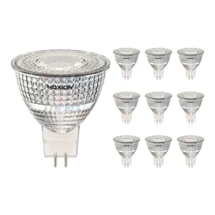 Die Mehrfachpackung 10x Noxion LED-Spot GU5.3 MR16 6.1W 621lm 36D - 830 Warmweiß| Ersatz für 50W ist eine effiziente GU5.3 LED-Lampe. Das Produkt der Marke Noxion ist der perfekte Ersatz für Ihre konventionelle Halogenlampe mit 50W und einem GU5.3-Sockel, bei dem die beiden Stifte einen Abstand von 5,3 mm zueinander haben. Die Abkürzung MR16 zeigt Ihnen, dass der Reflektor einen Durchmesser von 5 cm hat. Zudem strahlt das Produkt Licht in der Farbtemperatur 3000K - Warmweiß aus und punktet durch eine lange Lebensdauer.
