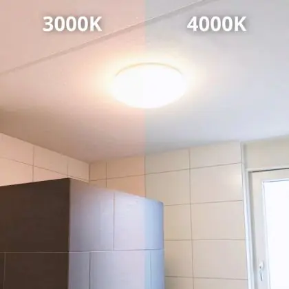 Die LED-Feuchtraumleuchte kommt mit der Farbtemperatur 4000K - Kaltweiß daher. Als Faustregel gilt: Je niedriger der Kelvinwert, desto gemütlicher wirkt das Licht.