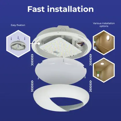 Die Noxion LED-Wand- und Deckenleuchte Pro V2 Weiß 12/16/20W 2400lm - 830-840-865 CCT | 325mm - IP65 - Bewegungs- und Lichtsensor + Augenlid Ring Weiß ist eine Feuchtraumleuchte. Sie strahlt Licht in der Farbtemperatur 3000K - 4000K - 6500K CCT aus und punktet durch eine lange Lebensdauer. Diese Leuchte ist speziell zur Verwendung in Feuchträumen (Keller, Waschräume, etc.) vorgesehen.
