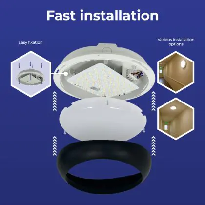 Die Noxion LED-Wand- und Deckenleuchte Pro V2 Weiß 12/16/20W 2400lm - 830-840-865 CCT | 325mm - IP65 + Ring Schwarz ist eine Feuchtraumleuchte. Sie strahlt Licht in der Farbtemperatur 3000K - 4000K - 6500K CCT aus und punktet durch eine lange Lebensdauer. Diese Leuchte ist speziell zur Verwendung in Feuchträumen (Keller, Waschräume, etc.) vorgesehen.