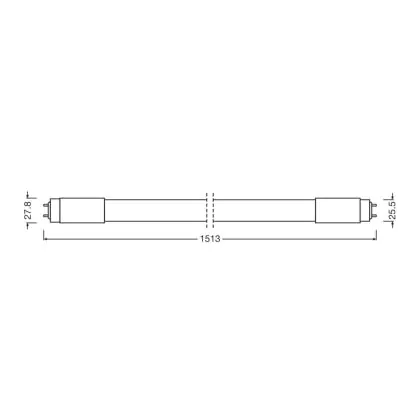 Die Osram LED Röhre T8 (UN) Standard Output 24W 2800lm - 865 Tageslichtweiß | 150cm - Ersatz Für 58W ist eine effiziente LED-Röhre und der perfekte Ersatz für Ihre konventionelle Leuchtstoffröhre mit 58W und einem G13. Die Röhre hat eine Länge von 1513 mm und einen Durchmesser von 26.8 mm. Zudem strahlt das Produkt Licht in der Farbtemperatur 6500K - Tageslichtweiß aus und punktet durch eine lange Lebensdauer.