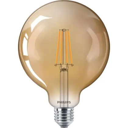 Die Philips Classic LEDbulb E27 G120 8W 822 Gold ist eine LED-Lampe, die sich durch hohe Effizienz und ein ansprechendes Vintagedesign auszeichnet. Sie spendet Licht in der Farbtemperatur extra Warmweiß und sorgt für eine komfortable Atmosphäre, die gern in der Gastronomie, in Hotels oder im Einzelhandel eingesetzt wird.