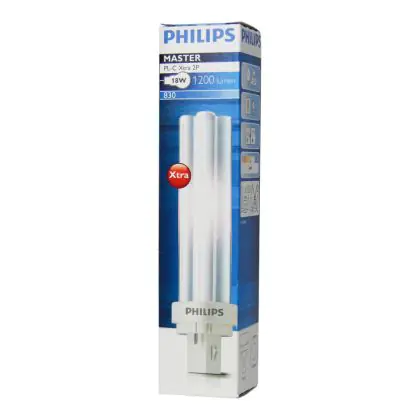 Die Philips MASTER PL-C Xtra 26W - 830 Warmweiß | 2 Pin ist eine G24d-3 (2-pins) Energiesparlampe von Philips. Das Produkt, welches auch als Kompaktleuchtstofflampe bezeichnet wird, strahlt Licht in der Farbtemperatur 3000K - Warmweiß aus und punktet durch eine lange Lebensdauer.