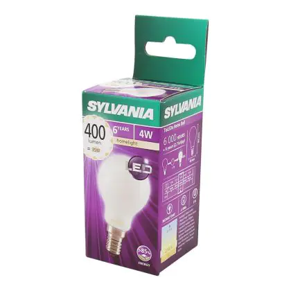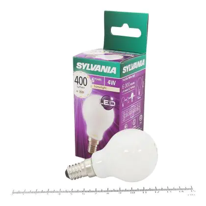 Die Sylvania ToLEDo Retro Ball E14 ist eine energieeffiziente LED-Lampe. Sie hat einen Eigenbedarf von nur 4 Watt, ersetzt dabei jedoch traditionelle Leuchtmittel von 35 Watt. Das ermöglicht eine Energieersparnis von fast 90 %. Darüber hinaus hat die LED einen E14-Sockel und ein kugelförmiges Design. Sie spendet extra warmweißes Licht mit einer Farbtemperatur von 2.700 Kelvin.